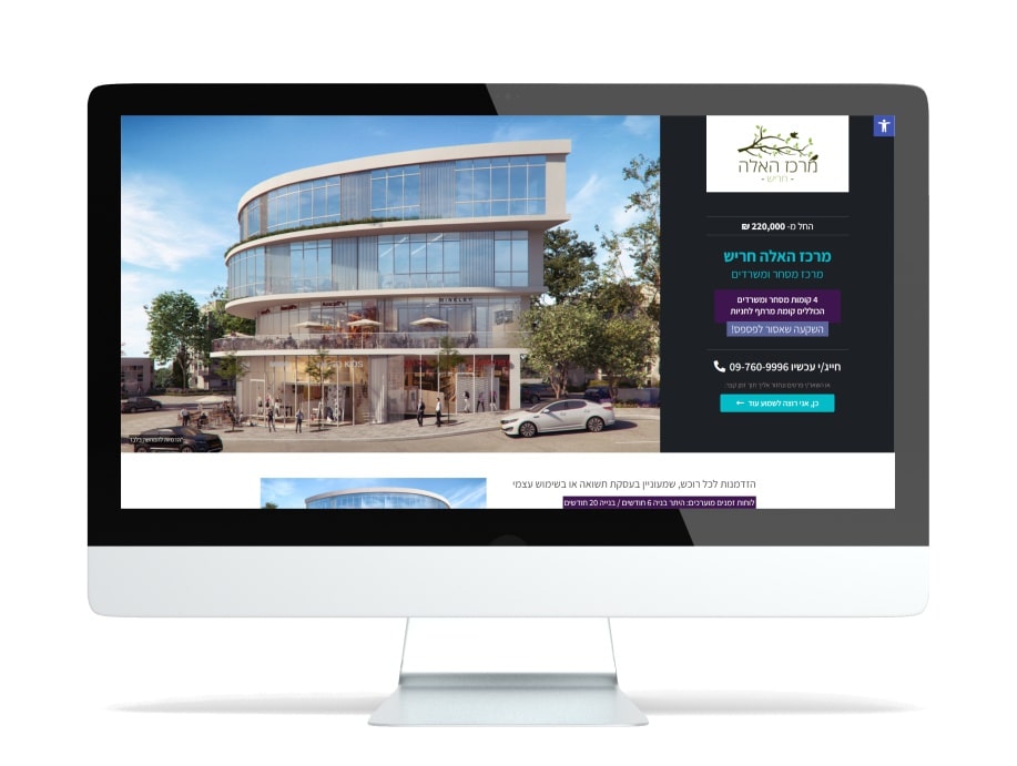 עיצוב ופיתוח דף נחיתה בתחום נדל"ן.